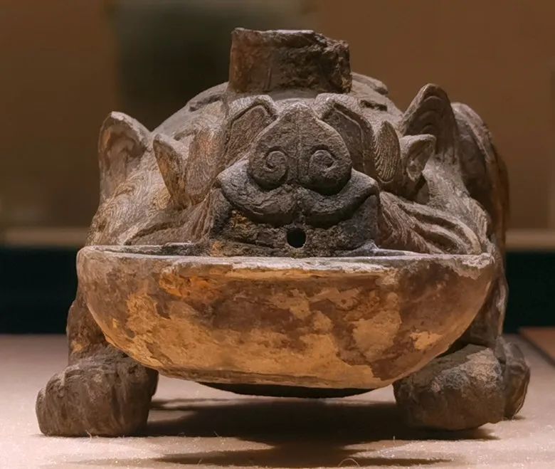 Close-up of the beast holding an oval cup in its mouth [Photo/Official WeChat account of the Nanjing Municipal Museum]