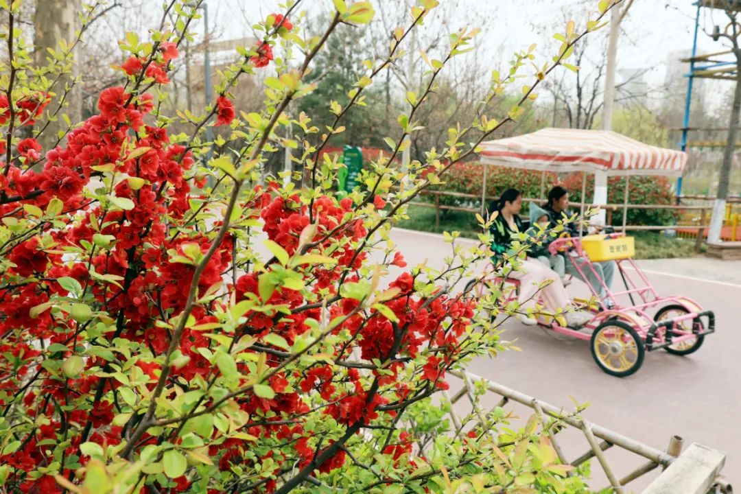 Red Chinese crabapple flowers in bloom at Xi'an Expo Park [Photo/Official WeChat account of Xi'an Expo Park]