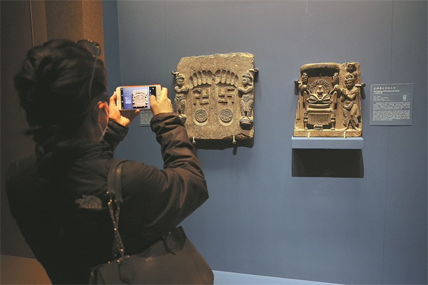 Photographs are taken of the stone artifacts. [Photo by Jiang Dong/China Daily]