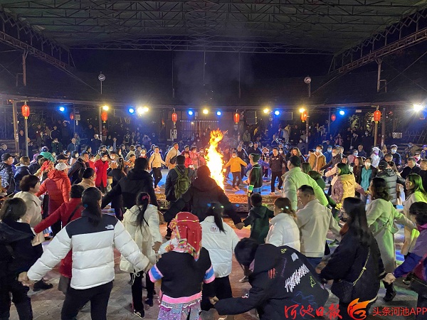 Tourists experience a bonfire party at the Renshouyuan Scenic Area in Bama Yao autonomous county. [Photo/Hechi Daily]