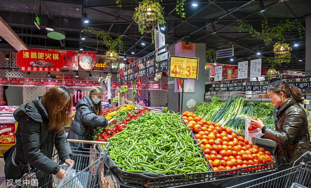 People shop for vegetables at a store in Qiandongnan Miao and Dong autonomous prefecture, Guizhou province, on Feb 10, 2023. [Photo/VCG]