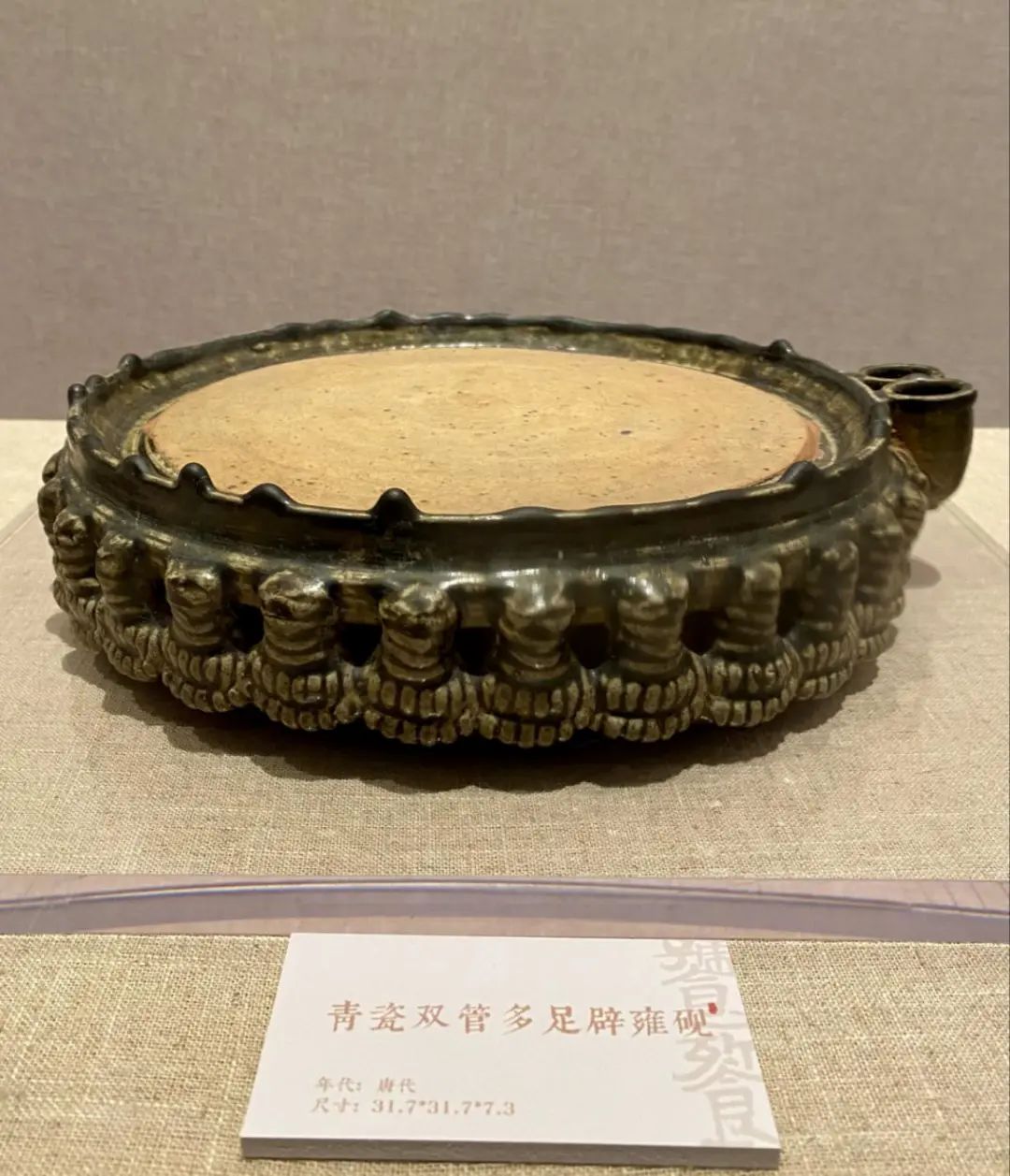 Tang Dynasty (618-907) celadon inkstone with dual tubes [Photo/Official WeChat account of the Shaoxing Museum]