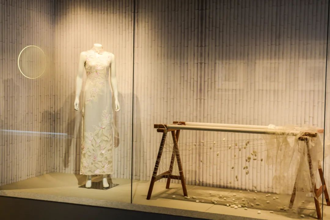 A costume themed on winter is on display at the China National Silk Museum. [Photo/Official WeChat account of the China National Silk Museum]