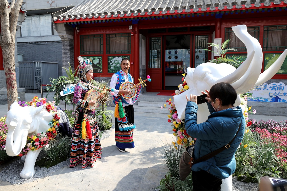 A guest watches a Yunan folk song performance in the Chinese cultural experience area. [Photo by Wang Zhuangfei/chinadaily.com.cn]