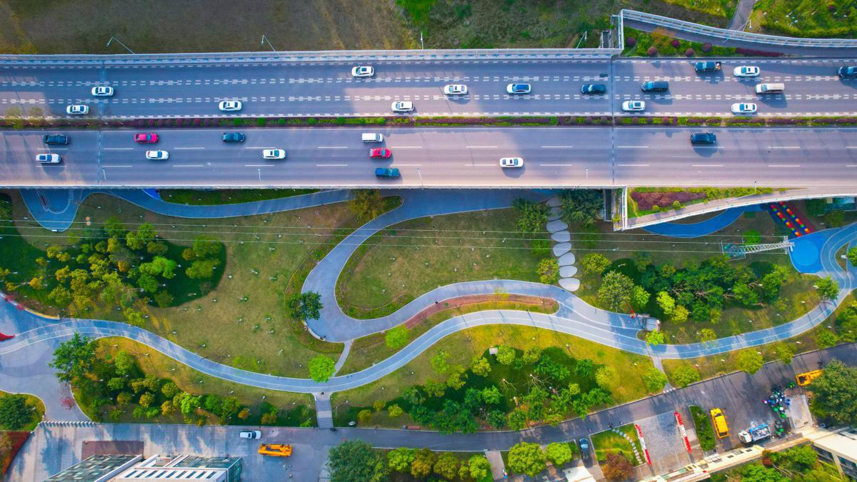 An aerial view of the public space under an overpass in Chongqing's Yubei district. [Photo by Zou Le/For chinadaily.com.cn]