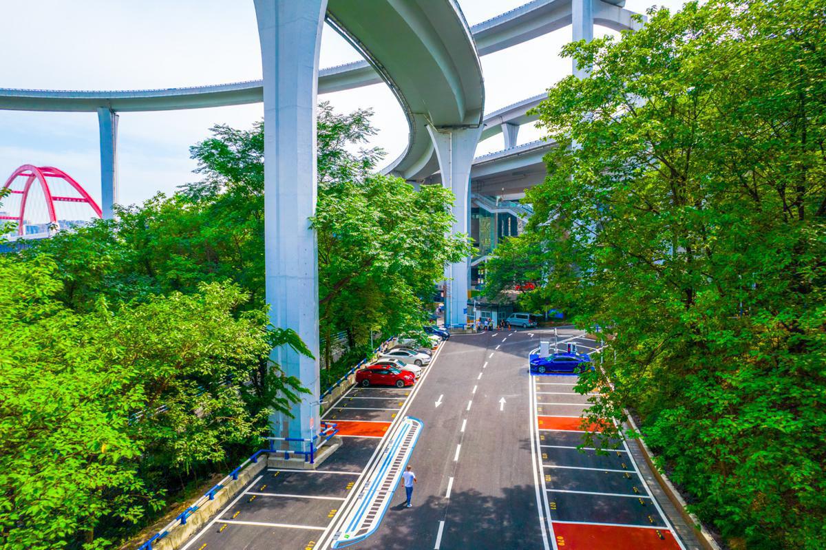 A convenient parking lot for the nine-to-fivers to shift between self-driving and public transportation has been built under an overpass near a rail transit station in Chongqing's Nan'an district. Its stunning view has also attracted many photographers for a shooting. [Photo by Guo Xu/For chinadaily.com.cn]