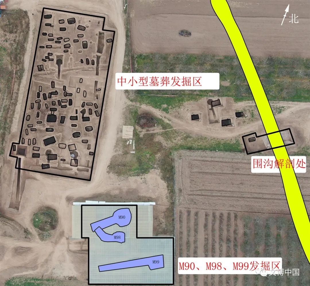 Distribution diagram of the tombs surrounded by a trench [Photo/Official WeChat account of the China Cultural Relics Daily]