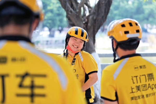 "There are no miracles, only hard work and dedication. You might be out of luck, but never lose the courage to keep going. Sweat is the scent of success." Jiang Xiaoxi recently posted that message on WeChat (a social-media app), and those words are a footnote to her growth. Jiang, 23, is a food-delivery driver and team leader of a food-delivery station managed by online service platform Meituan, in Shenzhen's Bao'an district, in South China's Guangdong province. Jiang, the youngest team leader at Meituan in Shenzhen, leads more than 30 food-delivery drivers, who shuttle the streets and alleys of Shajing sub-district daily as they serve the local residents.