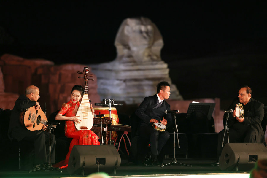 On April 3, artists from China National Traditional Orchestra and Egypt staged a music concert in front of the Great Pyramids and Sphinx in Giza, Egypt.