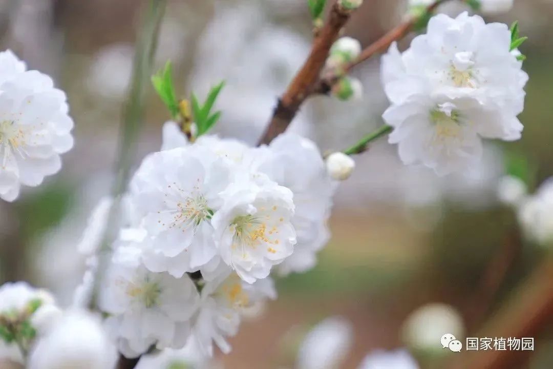 White peach blossoms bloom at the China National Botanical Garden in Beijing. [Photo/Official WeChat account of the China National Botanical Garden]