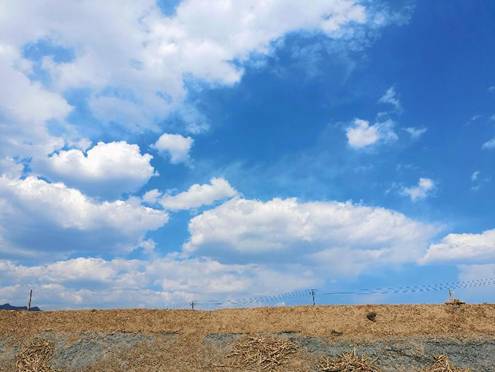 Nantun village rests under white clouds and azure sky in Laiyuan county, Baoding, Hebei province. [Photo by Sun Yuchen/provided to chinaservicesinfo.com]