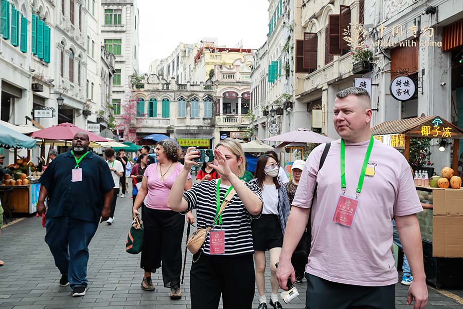 China-based foreign media correspondents, foreign internet influencers and domestic journalists visit Haikou, Hainan province, on April 10, 2023. [Photo/chinadaily.com.cn]