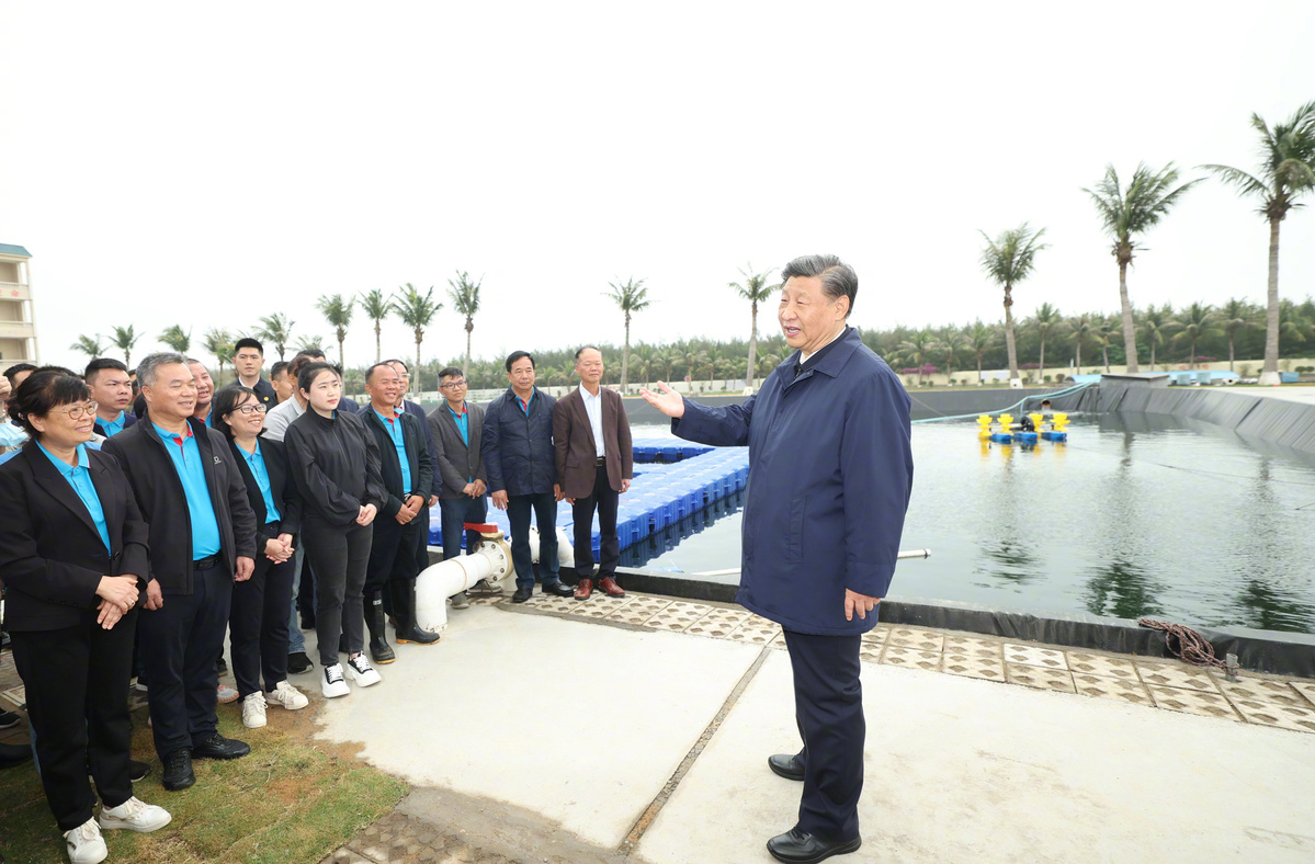 Chinese President Xi Jinping, also general secretary of the Communist Party of China Central Committee and chairman of the Central Military Commission, visits a mariculture base in Zhanjiang city, South China's Guangdong province, April 10, 2023. [Photo/Xinhua]