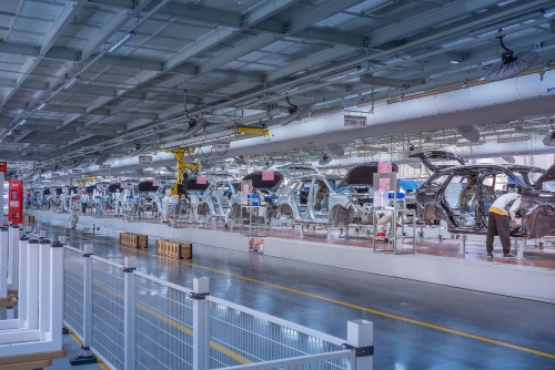 The local auto production line gets into gear. [Photo/tznews.cn]
