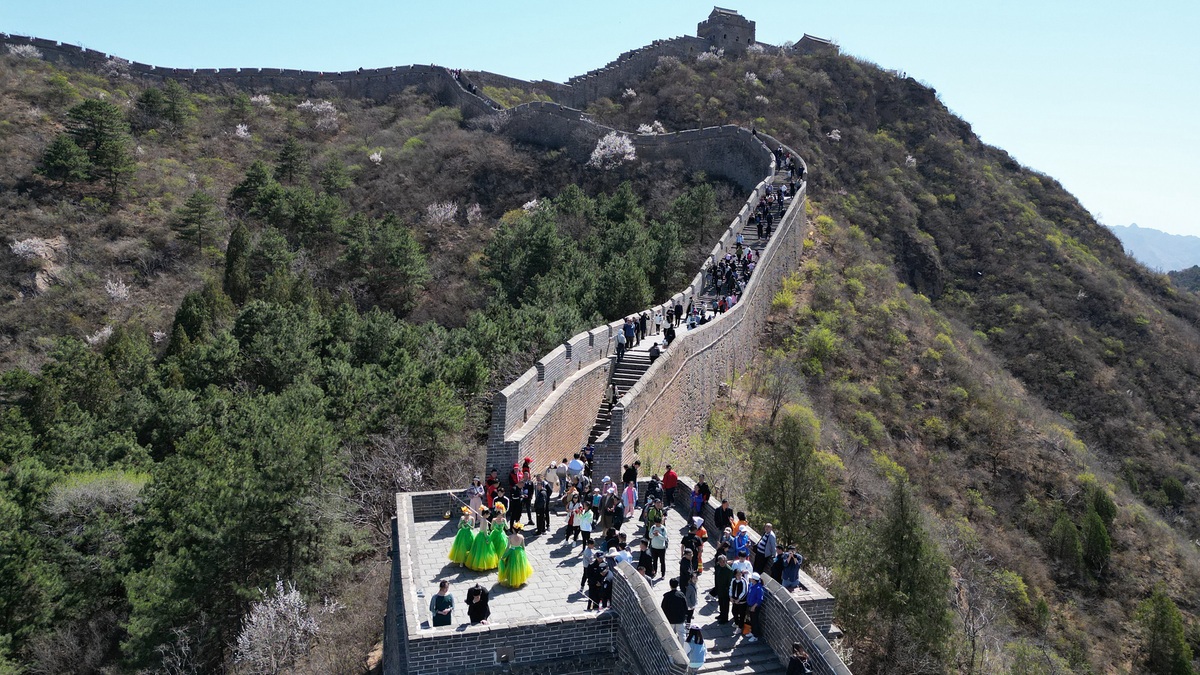 Tourists take in the scenery of the Great Wall in Luanping county of Chengde, Hebei province, on Saturday. [Photo by Zhou Jie/For chinadaily.com.cn]
