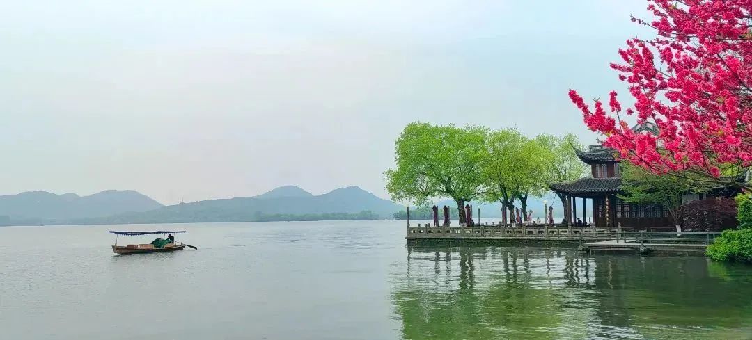 Let's go out and enjoy the spring beauty of the West Lake scenic area in Hangzhou, Zhejiang province! The willow branches are swaying and peach blossoms, peony flowers, and azaleas are in full bloom. The blooming irises look like dancing butterflies.