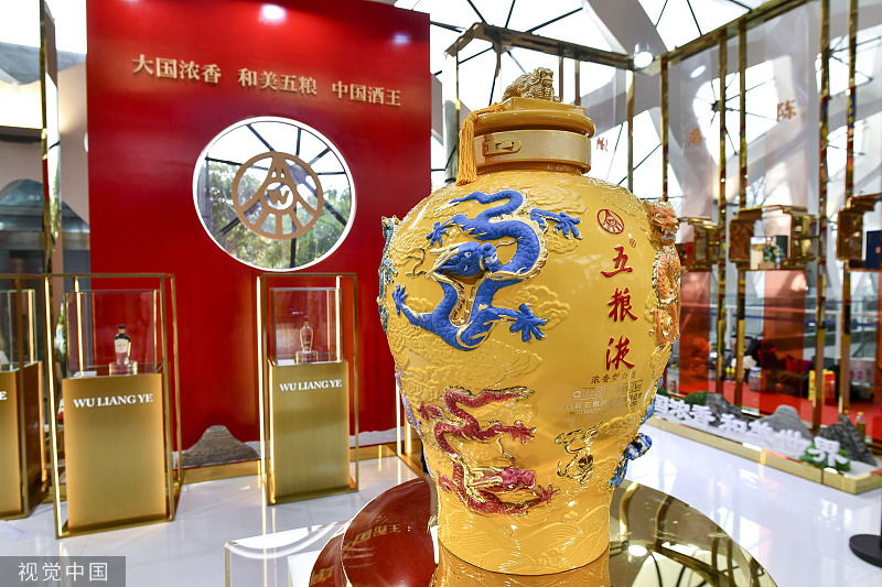 Liquor brand Wuliangye is on display at the third China International Consumer Products Expo in Haikou, Hainan province on April 12, 2023. [Photo/VCG]