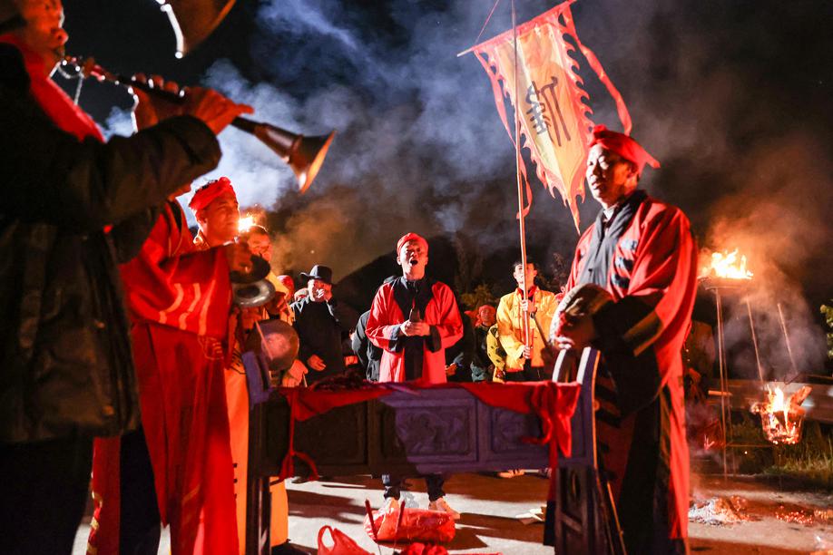 Local residents perform Nuo Opera on Saturday and Sunday in Linwu county of Chenzhou, Hunan province. It serves as a prayer for good luck and a happy life this year. [Photo by Chen Weiping/For chinadaily.com.cn]