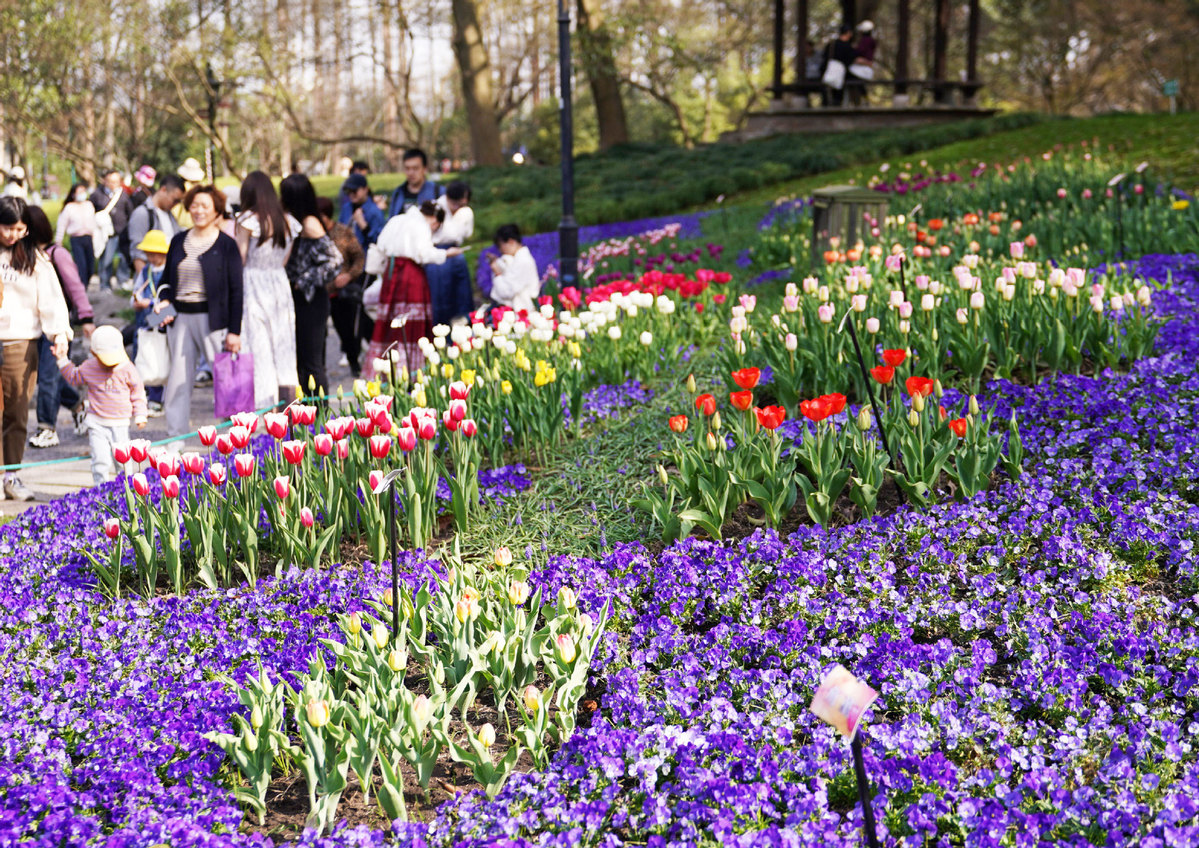Tourists enjoy flowers at a park in Hangzhou, Zhejiang province, on March 11, 2023. [Photo/Xinhua]