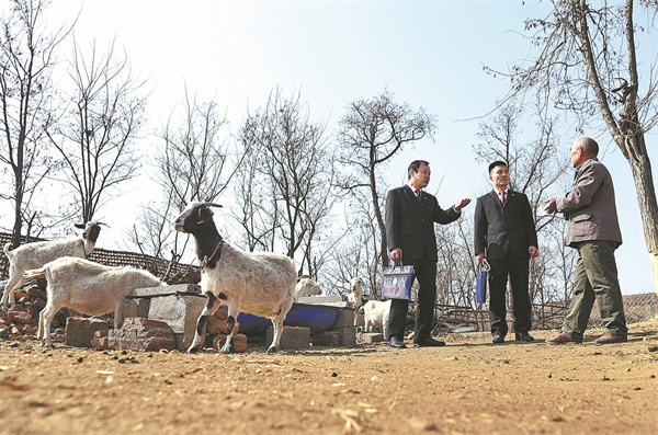 Judges from the court talk with a shepherd in Lucun on Feb 16. ZHAO DONGSHAN/FOR CHINA DAILY