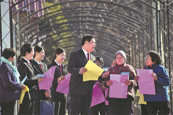 The court officers teach residents of Dongli township about the law on Feb 20. ZHAO DONGSHAN/FOR CHINA DAILY