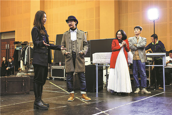 Actress Li Xiaomeng plays the role of Nina and actor Li Yue plays the role of Konstantin. On April 6, they performed the play's first act, which is set in a rural estate surrounded by the tranquil countryside. With a dozen leather suitcases, actors and actresses stand in a line facing the audience before they start to dance. Then the story begins, outdoors, nearby a beautiful lake, where the young and lively Nina arrives, ready to perform in Konstantin's new play. She talks about the beautiful surroundings and says that she feels like a seagull.