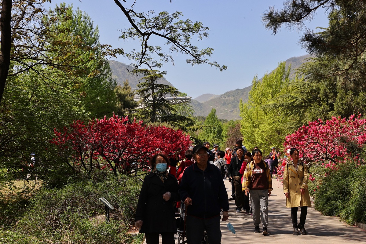 Visitors enjoy their time at the National Botanical Garden in Beijing on April 18, 2023. [Photo by Jiang Dong/chinadaily.com.cn]
