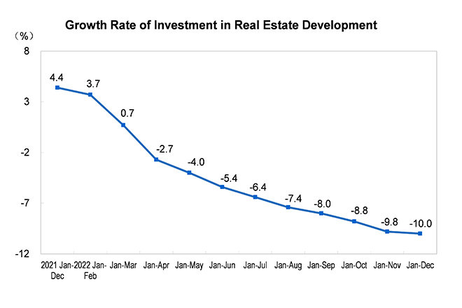 In 2022, the national real estate development investment was 13,289.5 billion yuan, a decrease of 10.0 percent over the previous year; Among them, the residential investment was 10,064.6 billion yuan, down 9.5 percent.