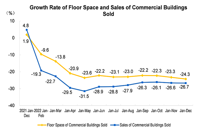 The sales of commercial housing was 13,330.8 billion yuan, down 26.7 percent, of which residential sales decreased by 28.3 percent.