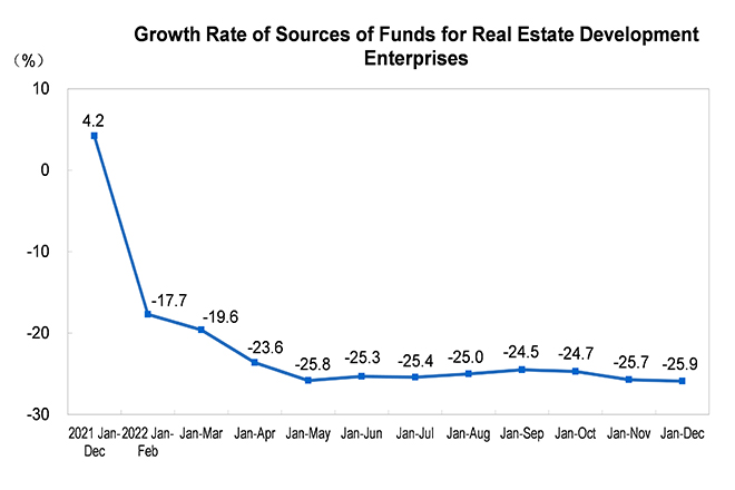 In 2022, the funds put in place by real estate development enterprises were 14,897.9 billion yuan, a decrease of 25.9 percent over the previous year.