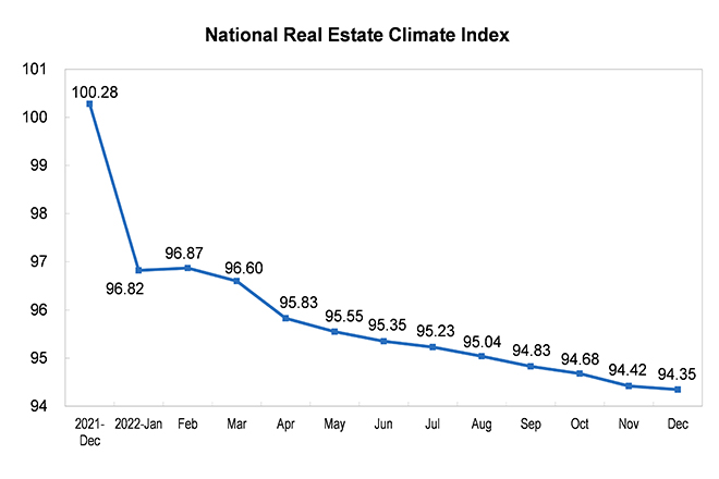 In December 2022, the real estate development prosperity index (hereinafter referred to as "China's real estate climate index") was 94.35.
