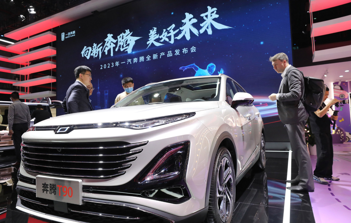 People visit the exhibition area of FAW-Bestune at the 20th Shanghai International Automobile Industry Exhibition in Shanghai, April 18, 2023. [Photo/Xinhua]