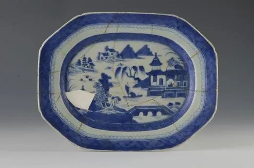 Blue-and-white plate with landscape patterns, Qing Dynasty (1644-1911) [Photo/Official WeChat account of the Guizhou Ethnic Museum]