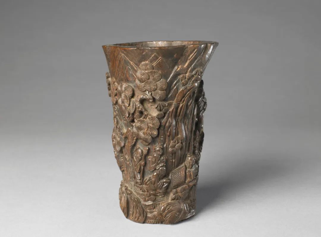 Agarwood brush pot carved with landscape and figure patterns, Qing Dynasty (1644-1911), from the collection of the Palace Museum [Photo/Official WeChat account of the Hainan Museum]