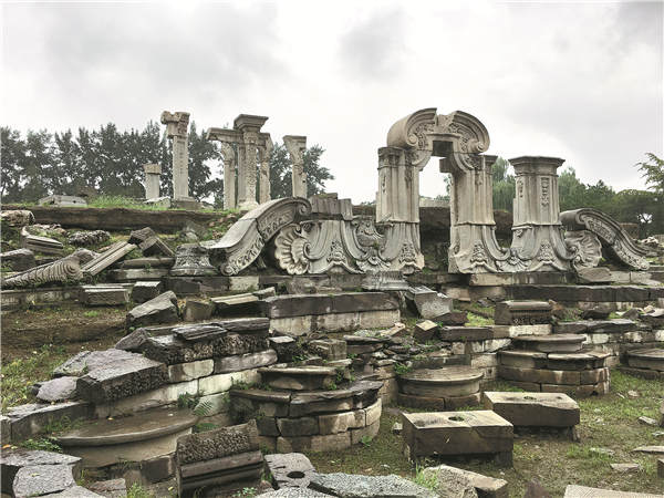 Ruins remind people of the past glory and pain of Yuanmingyuan, but also offer inspiration for modern designers to remember its history through everyday products. [Photo by Wang Kaihao/China Daily]