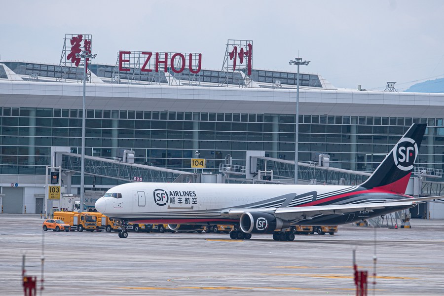 WUHAN -- China's first dedicated freight airport, Ezhou Huahu Airport, officially opened an air cargo route from Ezhou, Central China's Hubei province to Delhi, India as an all-cargo flight with 47-ton cargos took off on Friday.