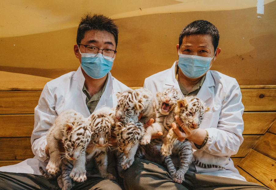 Six white tiger babies. [Photo provided to chinadaily.com.cn]