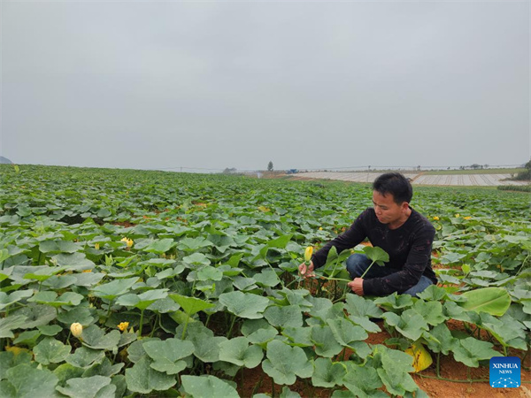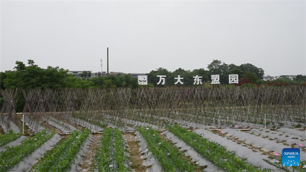 Nearly 30 km away from this pumpkin field, fruit and vegetable varieties from Thailand, including bitter gourd, sweetcorn, watermelon and cucumber, are growing vigorously at a plantation base operated by Nanning Wanda Agricultural Company, a local crop seed dealer.