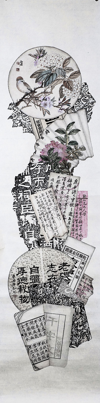 Jinhuidui paintings feature fragments of paintings and calligraphy works.[Photo provided to China Daily]