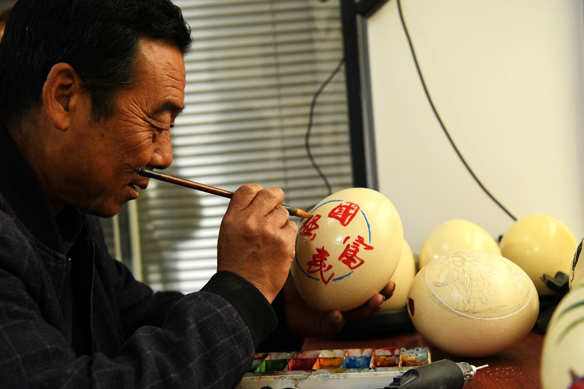 Hebei farmer carves fragile works of art on eggshells