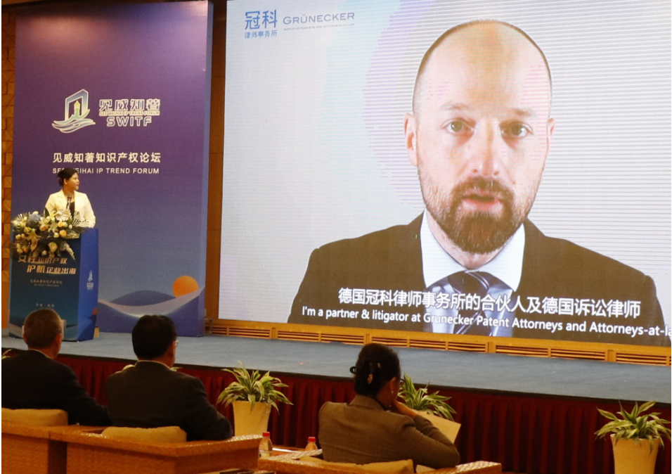 Sebastian Ochs, partner & litigator at Germany's Grünecker, gives a speech at the forum. [Photo provided to investinchina.chinaservicesinfo.com]