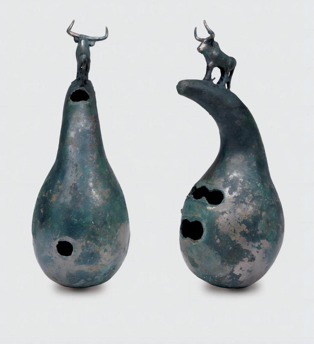 (musical instrument) decorated with standing ox, Warring States Period (475-221 BC) [Photo/Official WeChat account of the Shanxi Museum]