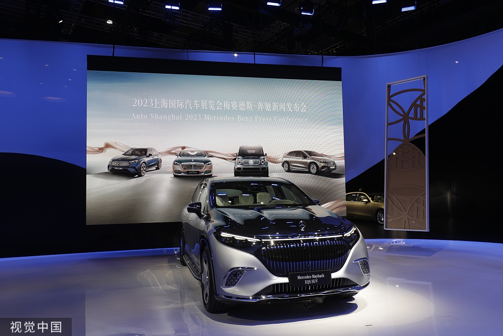 A Mercedes-Benz Group AG Maybach EQS electric sport utility vehicle (SUV) is on display at the Auto Shanghai 2023, April 21. [Photo/VCG]