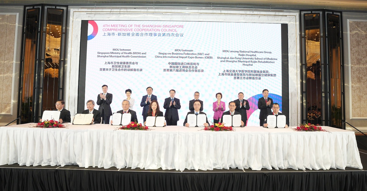 The meeting saw a record 15 agreements signed between Singapore and Shanghai, covering areas such as people-to-people exchanges, financial services, technology and innovation, as well as emerging areas such as the digital economy.