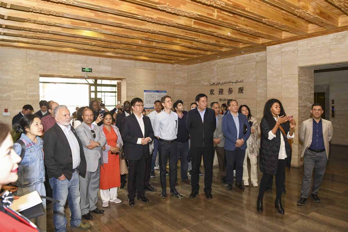 Foreign envoys visit a memorial hall on the protection and management of the old town of Kashgar, Northwest China's Xinjiang Uygur autonomous region, April 24, 2023. [Photo/Xinhua]