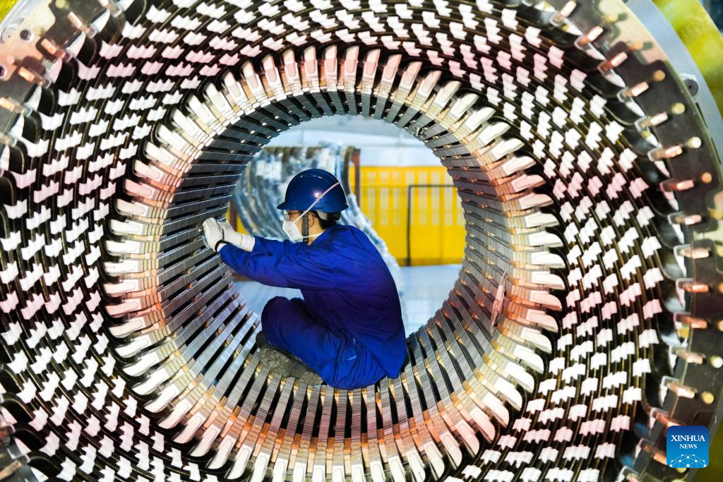 A worker works at a factory of Harbin Electric Machinery Company Ltd of Harbin Electric Corporation in Harbin, Northeast China's Heilongjiang province, Sept 3, 2022. [Photo/Xinhua]