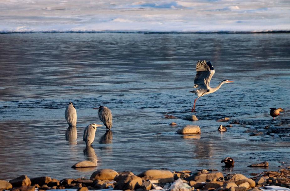 These migratory birds, a species under second-class protection in China, were seeking food in the melting river, forming a picturesque scene and attracting many residents and photographers.