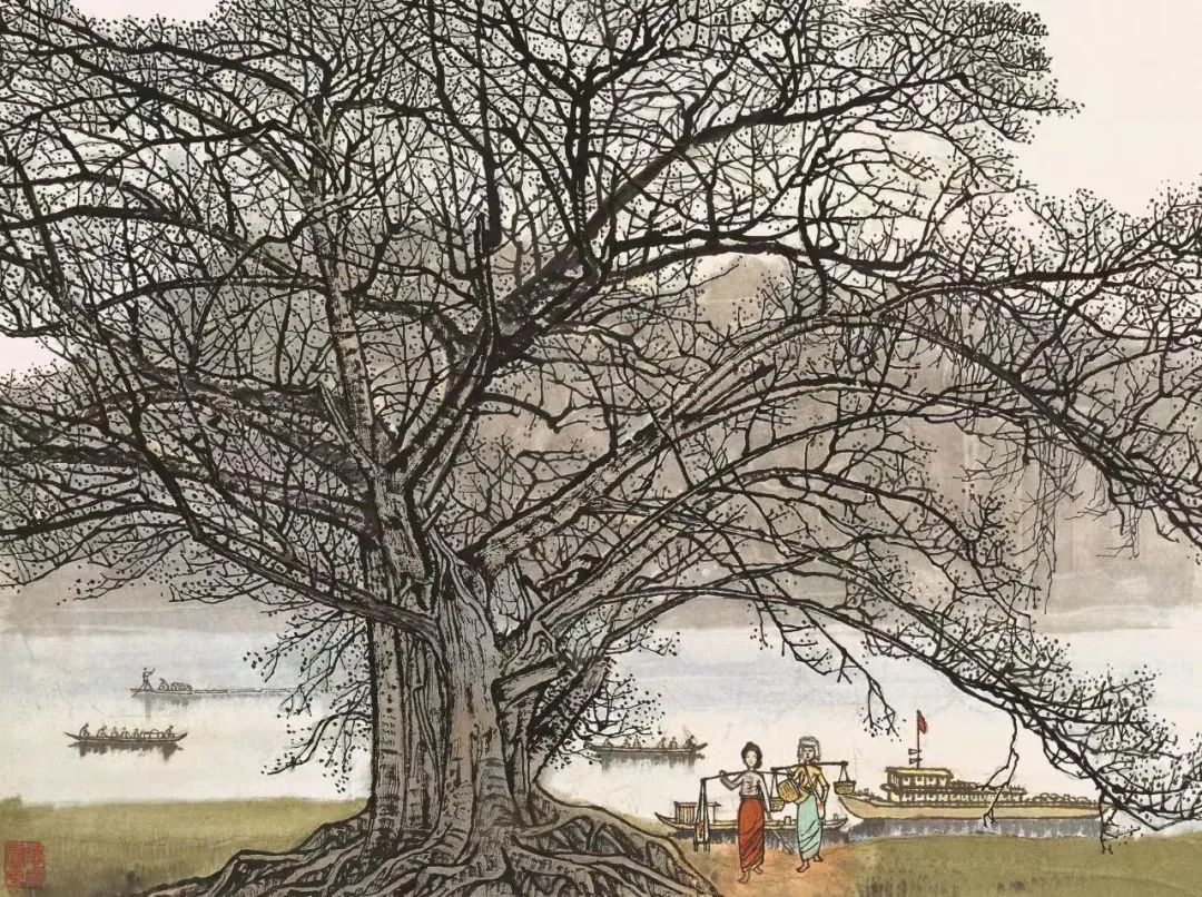 Beside the Lancang River, Hou Dechang, ink and color on paper, 1978 [Photo/Official WeChat account of the Beijing Fine Art Academy]