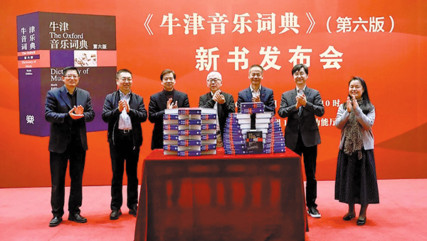The People's Music Publishing House in Beijing celebrates the April release of the Chinese version of the sixth edition of the Oxford Dictionary of Music.[Photo provided to China Daily]