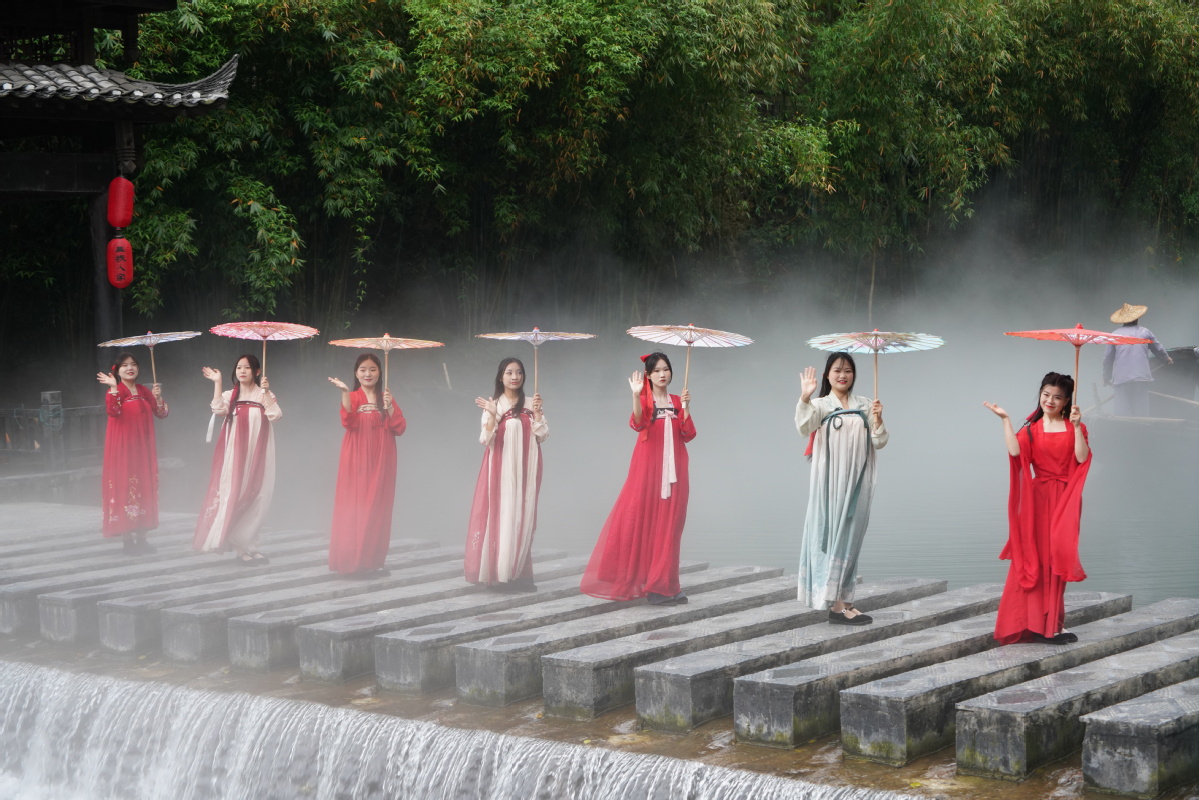 The Tribe of the Three Gorges scenic area draws visitors with its picturesque view and ethnic group culture. [Photo by Xu Lin/China Daily]